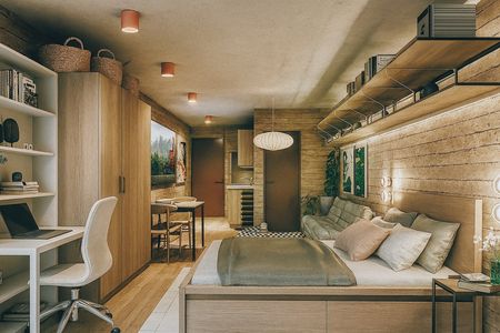 Diseño del despacho premiado Greenfield en Paseo Santa Lucía. Conjunto limitado a 18 hogares de 1, 2 y 3 habitaciones, con entrega en 2025.